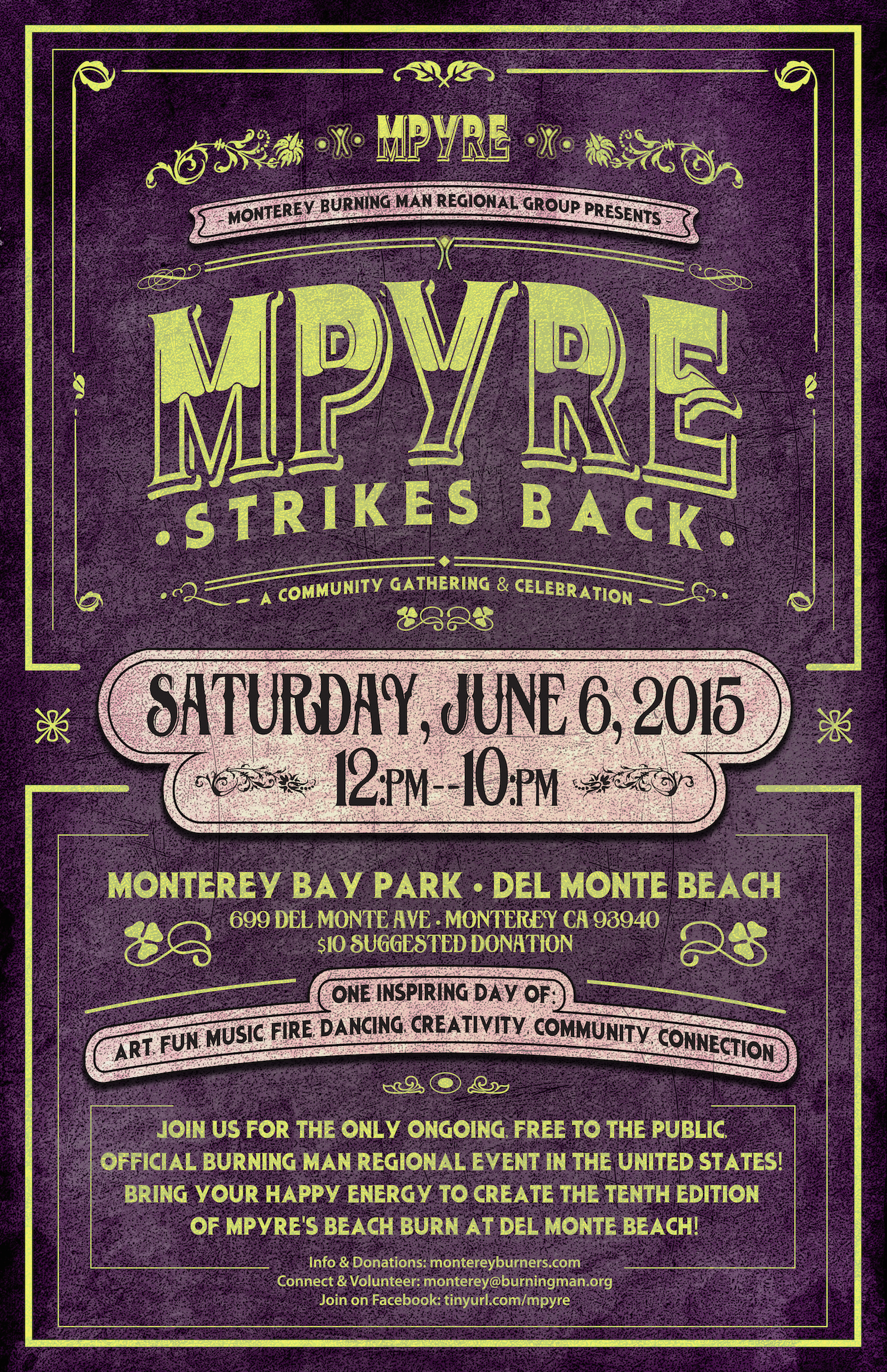 Yes, it’s time for The Big ASK… Donate now at mpyre.treasury [at] gmail [dot] com to cover our pre-event expenses: permit, insurance, posters–official documents, Check!